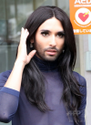 「ひげの女装歌手」コンチータさん来日、渋谷区長と面会