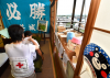 支援物資が山積み 足りぬ人手 |